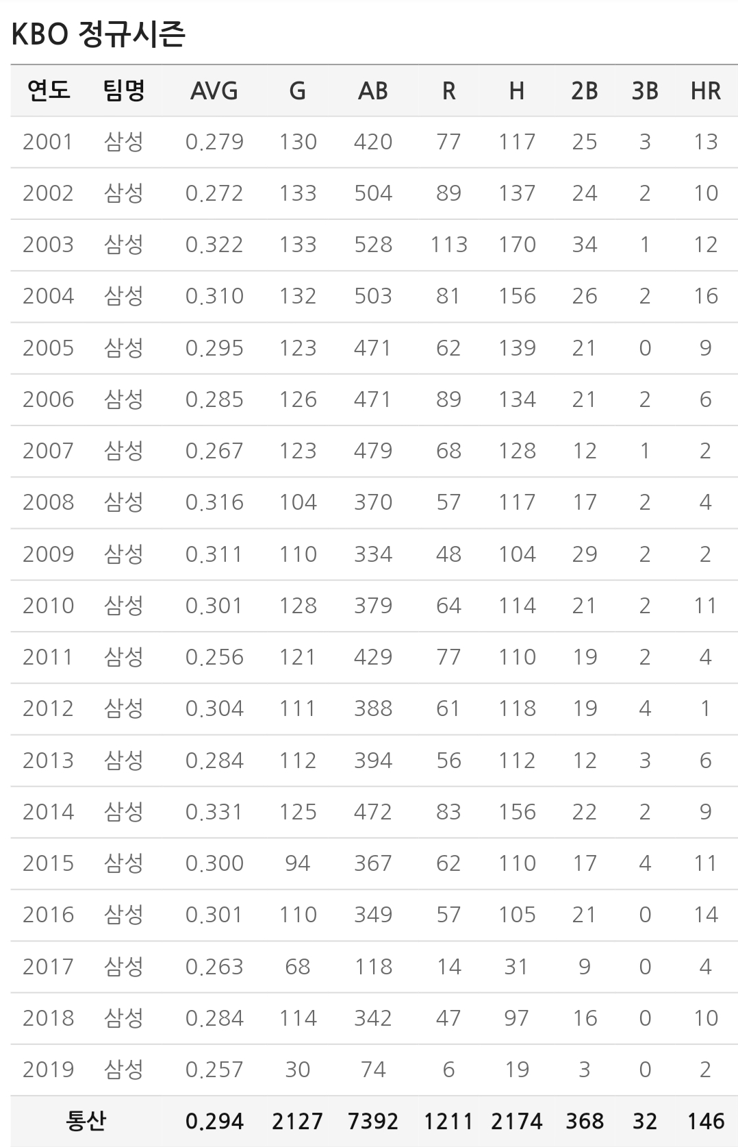 삼성 라이온즈 (2001~2019) 외야수