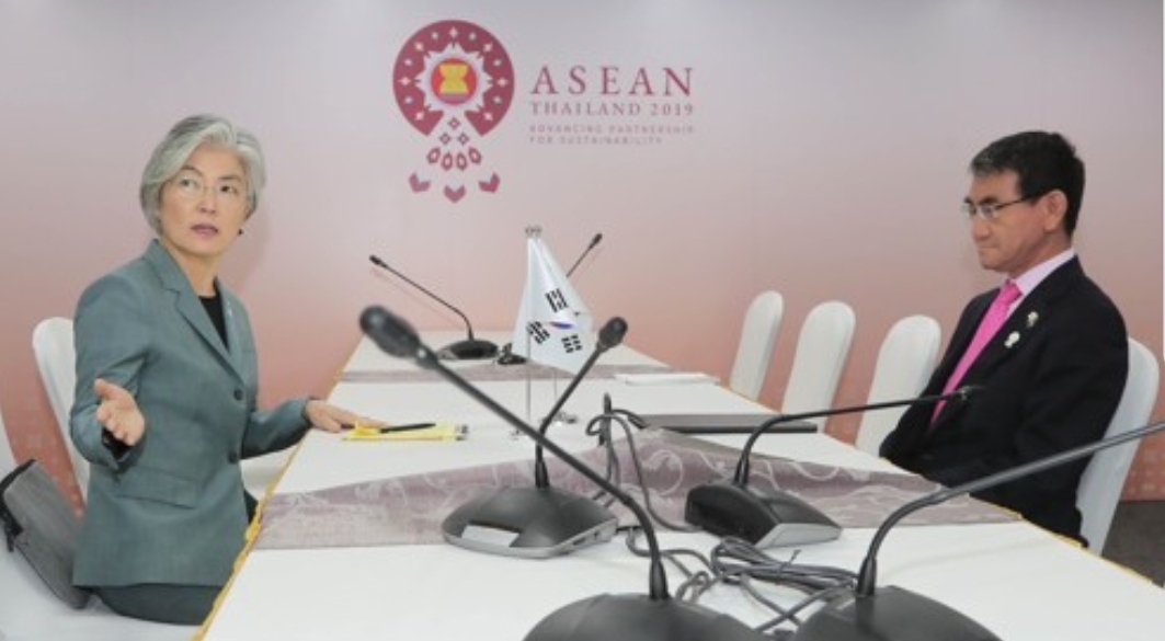 태국 방콕 센타라 그랜드호텔에서 '화이트리스트' 제외조치와 관련하여 강경화 외교부 장관과 고노 다로 일본 외무상이 양자 회담을 했지만 서로에 의견만 피력했을뿐 성과없이 끝났다고 한다.